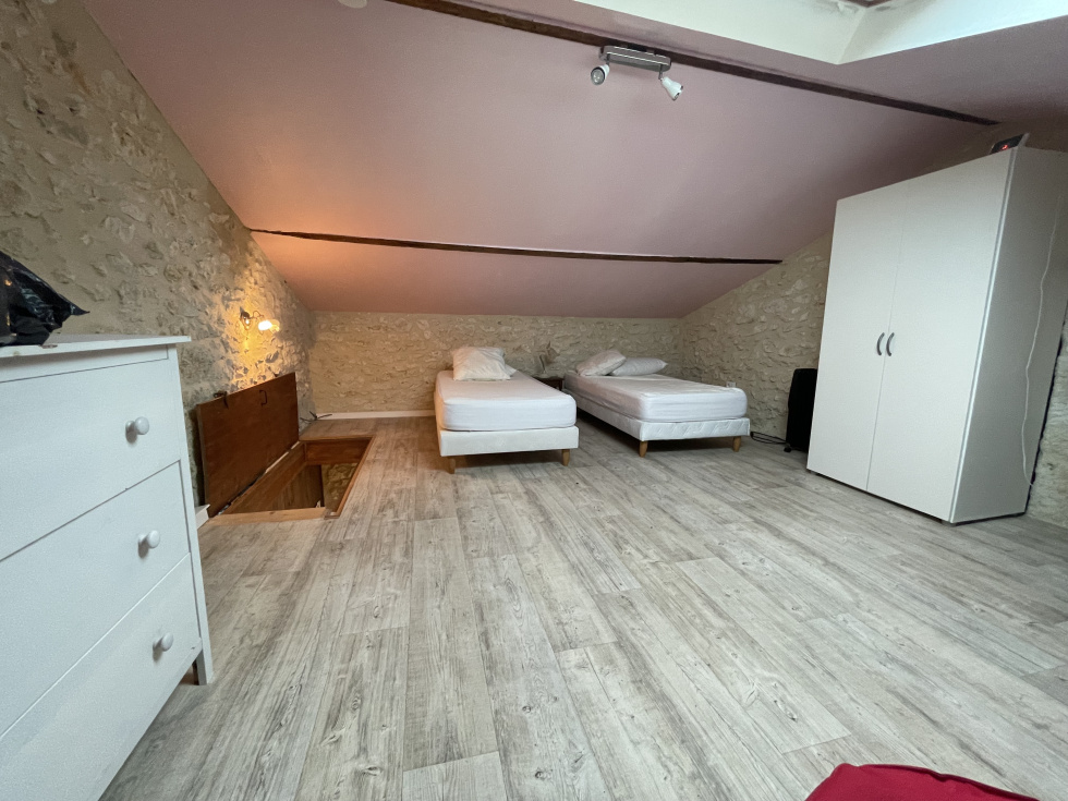 FLAUGEAC, à 15min de Bergerac, nous vous proposons cette charmante maison de campagne, au calme, sur une parcelle d'environ 1500m2 arborée, entourée de vignes. Elle se compose d'un salon avec un accès sur l'extérieur, une cuisine dinatoire donnant sur une terrasse, 2 chambres, une salle d'eau, un WC séparé. Au 1er étage, une chambre aménagée. Un grand garage complète le bien. Menuiseries double vitrage PVC, cheminée avec poêle, assainissement individuel non conforme. Cette annonce vous intéresse réf 532 contactez votre agence Akesia Bergerac au 0752959804 ou par mail rv@akesia.fr